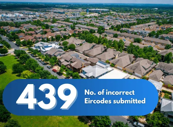 While the high number of Eircodes provided by customers was undoubtedly positive—42,500 of 48,101—1% (439) of these were actually incorrect. This is where address validation becomes critical, and where we step in to make the correct amendments. Incorrect Eircodes can occur for a number of reasons, such as typos or mistakenly using an Eircode from an old address.
