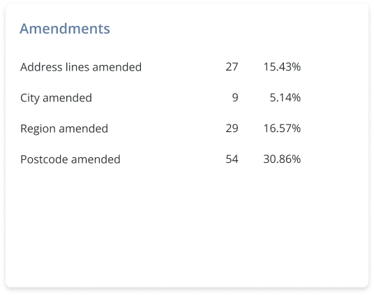 The Amendments report section shows you the percentage of your addresses that have these issues.