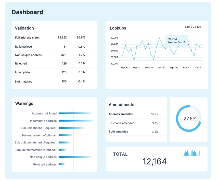 As addresses are entered, we analyse them using our Verify API. We check for accuracy, completeness, and issues that could impact delivery.